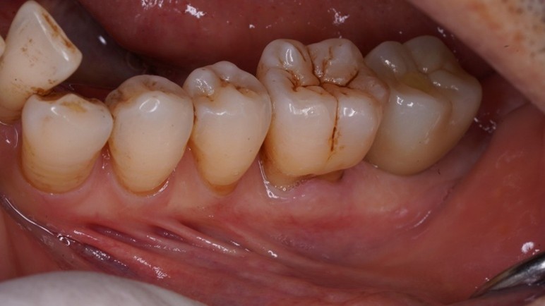 その後にすでに失っていた左下奥歯にインプラント治療をすることになりました。インプラントも歯周病になる(インプラント周囲炎)リスクがあり、インプラント周囲炎は普通の歯周病以上に治療が大変となります。
